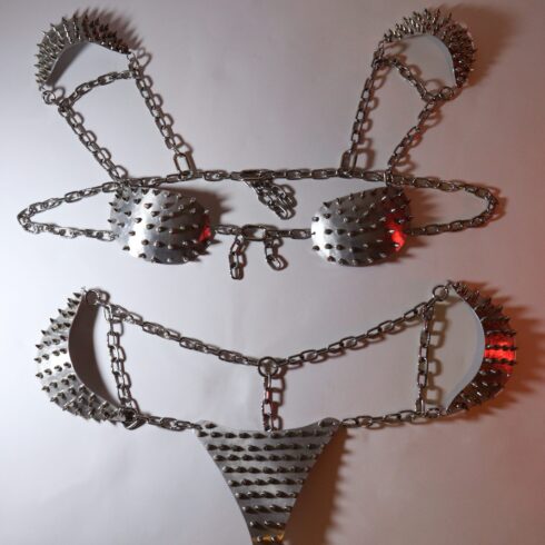 Crafted from high-quality 18-gauge aluminum and 2mm 316 stainless steel chains, the Lucidus Fluted Armor Set is designed to mold to your body like a second skin. The cold-working techniques, such as dishing, raising, and fluting, ensure that the armor is strong yet flexible. This set is both adjustable and malleable, making it versatile and easy to wear.